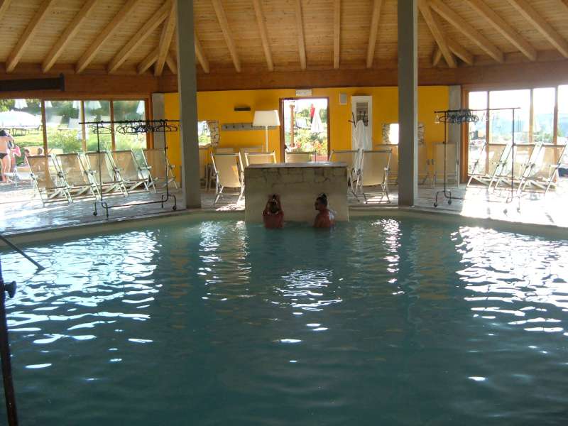 Le piscine sono quattro: una coperta, due esterne, di cui una dotata di bagnasciuga e le vasche con le cascate, dove sostare sotto i getti ed inalarne i vapori.