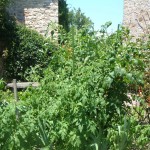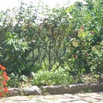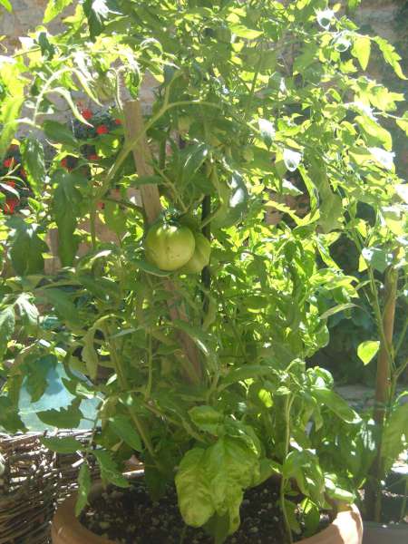 Fra le rose spuntano pomodori e prezzemolo, accanto ai vasi di basilico, ne troviamo altri con varie qualità di peperoncino, ma il fiore all’occhiello è la grande conca con gerani e pomodori, bella, buona e utile contro le zanzare.