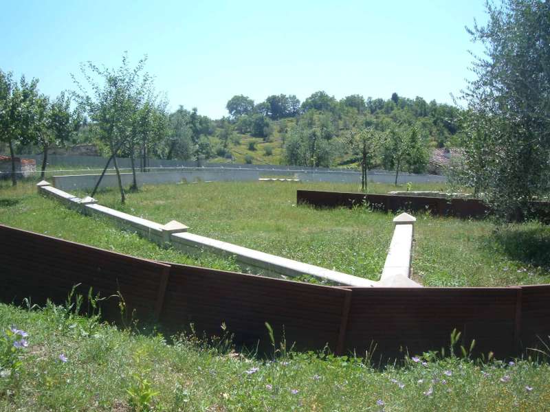 Tre sono le opere esterne che fanno parte della collezione: ci si arriva pian piano percorrendo a piedi la stradina che discende dal borgo, passando fra le ville del settecento, fino ad arrivare tra le vigne. Giriamo la curva e ci imbattiamo nel frutteto, una prima ispezione e scopriamo la Grande Muraglia , il muro di Berlino, il Vallo di Adriano…