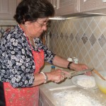 Questo post è un omaggio a zia Nenella, la quale in una serata fredda e piovosa, in cui mi trovavo nelle Marche, mi ha spiegato come sono fatti i frascarelli. La domanda è nata da una locandina di una sagra che avevo visto fuori. E dalla spiegazione, siamo passati ai fatti, coinvolgendo tutti i presenti a colpi di acqua e farina.