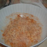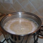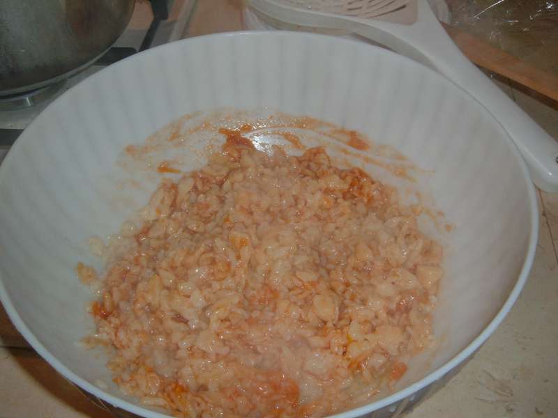 Si lessa il riso in acqua salata, a metà cottura,lentamente si versa a pioggia la farina, si mescola, fino a portare il tutto a cottura. Una volta pronti, si mettono in una ciotola e si condiscono con il sugo. E voi avete qualche variante nella vostra ricetta? E voi avete altre varianti? Fatemi sapere come li fate…
