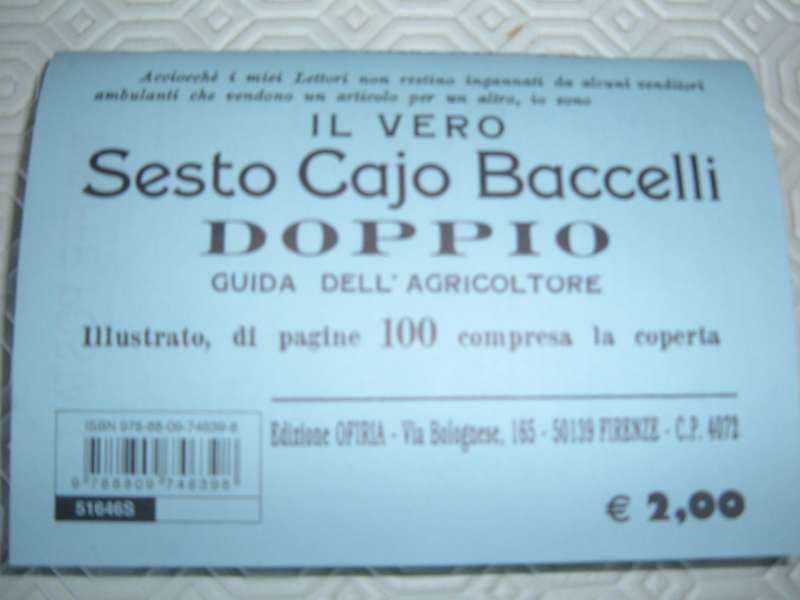 Con la fine dell’anno in corso e l’inizio di quello nuovo è tutto un pullulare di oroscopi, guide, agende, ecc…Fra tutte queste pubblicazioni, ce n’è una che merita un pò di attenzione: il vero Sesto Cajo Baccelli, la guida dell’agricoltore.