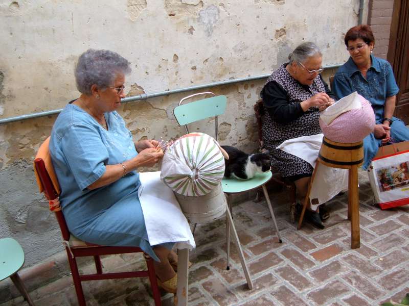 La tradizione del “merletto a tombolo”, è stata istituita dalle suore benedettine, fino a conquistare negli anni la popolazione femminile. E’ molto bello camminare per le stradine strette e incrociare queste signore che realizzano con pazienza e minuziosità merletti di pregevole fattura. Si rimane incantati dalla velocità con cui spostano, girano e intrecciano i fili.