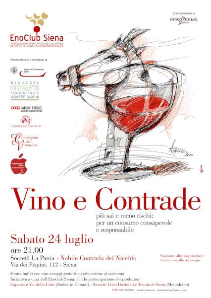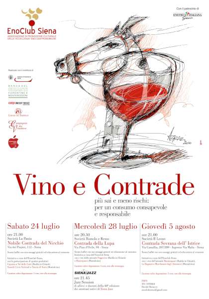Siena e il vino in contrada: l‘Enoclub di Siena, ha organizzato delle serate dedicate al vino, completamente gratuite, se siete interessati, eccovi il programma completo: