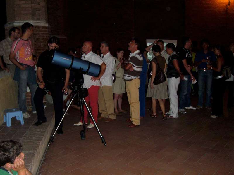 Sotto il Loggiato di Palazzo Pubblico, in Piazza del Campo, ha svolgimento la degustazione dei vini; in contemporanea è prevista per i partecipanti una visita guidata notturna al Museo Civico e alla Torre del Mangia. Vi è poi uno spazio dedicato all’osservazione delle stelle a cura dell’Unione Astrofili Senesi.