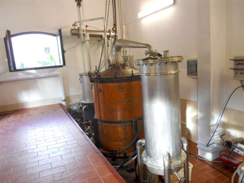Una musica rock sparata a tutto volume, mi accoglie nel piazzale antistante i locali dell’officina estrattiva , e penso, si comincia bene! Scendo di macchina e vengo rapita da un intenso profumo di lavanda: è già cominciata la distillazione. Lorenzo mi accoglie con simpatia e un pò di sorpresa: è la prima volta che ci vediamo! Entrambi abbiamo scoperto che “esistiamo” tramite il mio blog: lui cercava lavanda nel Chianti e ha trovato i miei 2 post sulla lavanda! Le cose buffe della vita!