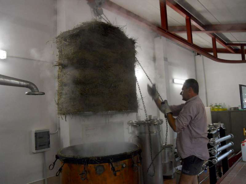 Subito inizia a spiegarmi come si estrae l’olio essenziale di lavanda, mi fa vedere i vari processi dei tre estrattori, tutti diversi fra di loro per uso e procedimento. Sono estasiata, mai avevo visto dal vivo una cosa del genere! Ma il momento clou è stato quando finito tutto il processo, Lorenzo ha aperto l’estrattore di rame e tirato su i resti di lavanda! Un insieme di steli e fiori, esausti per quello che avevano appena finito di produrre, ma ancora profumatissimi.