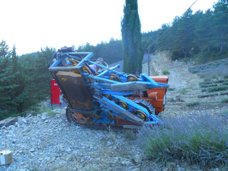 Non contenta ho avuto anche l’onore di vedere il trattore per la raccolta della pianta: una specie di forbice grande, proveniente dalla Francia, attaccata lateralmente al mezzoe in grado di tagliare e legare piccoli mazzi di lavanda, che serviranno poi per essere immessi nell’alambicco per l’estrazione dell’olio.