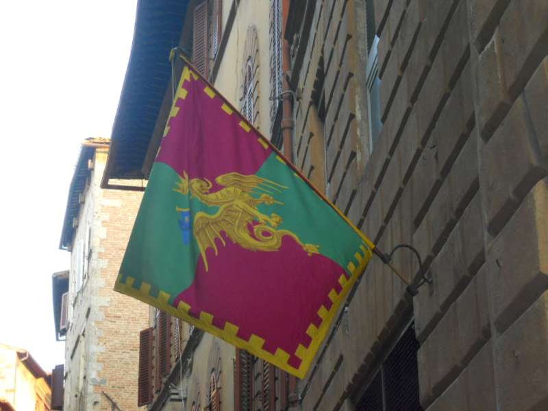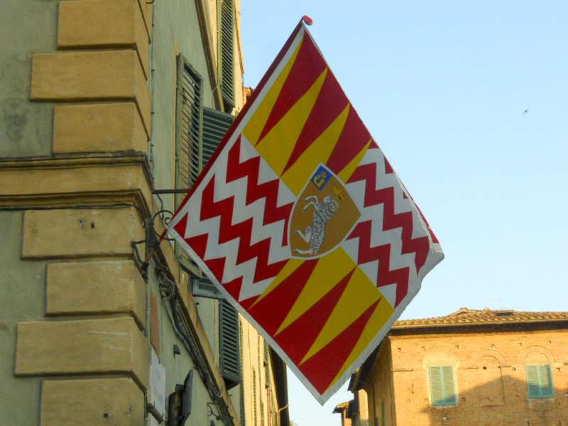 Per il Palio di luglio, vi avevo messo le piastrelle con i confini delle contrade come immagini, mentre oggi vi metto direttamente le bandiere. Stasera se non siete in “Piazza”, gurdate la corsa alla tv!