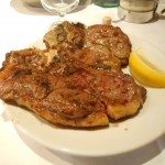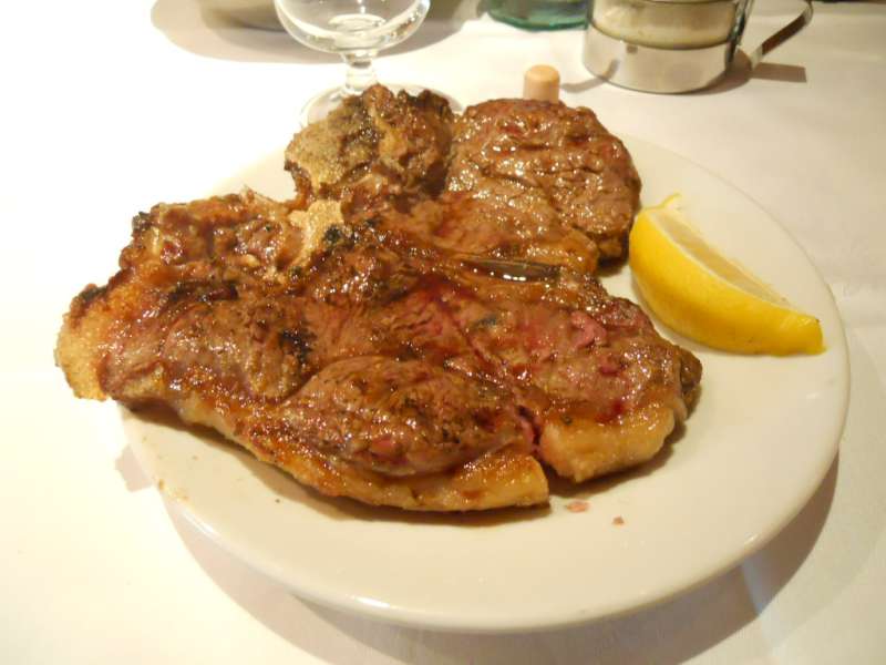 Si parte con il classico antipasto di salame e prosciutto crudo ben tirato. La pasta è al pomodoro o al sugo: vada per gli spaghetti al ragù! Mi faccio fare una mezza porzione, cucinata dalla signora Franca, poi son pronta per la bistecca! Bernardino prima te la porta in tavola, te la fa vedere e dopo la cuoce direttamente sulla brace del camino: tenera e succosa, ti fa quasi vedere il paradiso.