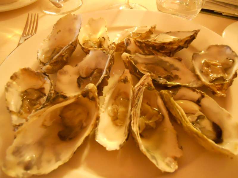Si parte con un piccolo appetizer di salmone selvaggio leggermente scottato, accompagnato da pane fatto in casa, che servirà anche successivamente per le ostriche. Molto buoni i panini con l’oliva taggiasca all’interno e il burro Echiré per accompagnare i molluschi.