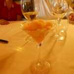 L’abbinamento con lo champagne è stato prolungato anche con i caprini: quattro formaggi molto diversi, con partenza delicata del primo, fino al finale pungente dell’ultimo. In chiusura un gramolato al melone, che ben si sposava con il Collard Rosè brut del 1985.
