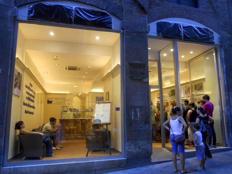 GROM: ha aperto da pochissimi mesi, proprio sul “Corso”, la prima gelateria di Siena con le carapine! Penso che all’inizio abbia fatto un pò strano per i senesi e i turisti non vedere i gusti, ma alla fine hanno capito quale è la filosofia di Grom, ovvero il gelato come una volta! I coni partono da 2,50 euro! Forse un pò carini, ma ripagano la vera frutta, la crema di Grom con paste di meliga e granella di cioccolato, il cioccolato extra noir, il torroncino e il limone della Costiera Sorrentina. C’è anche la possibilità di sedersi nei divanetti posti all’interno! Oddio, siamo un pò in “vetrina” in “Banchi di Sopra”, ma a chi piace…..
