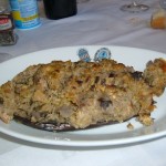 L’insalata di lesso si presenta fresca e saporita, accompagnata da cannellini, zucchine, pomodori e carote, ma quì si viene soprattutto per la bistecca, la vera “fiorentina” con l’osso, che si scioglie in bocca, accompagnata ,se piace, da melanzane ripiene.