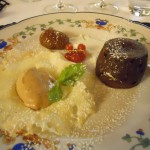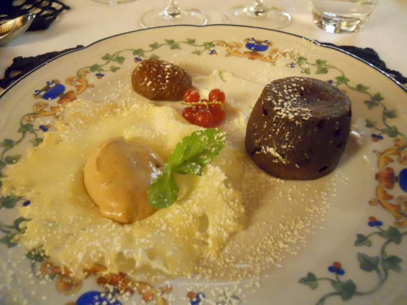 Infine il trionfo del dolce, con il tortino di castagne con marron glaceés e delizie di gianduia e cannella. Ad annaffiare il tutto , spumante brut “Mionetto”, Vermentino “Le Serre” 2008 di “Lupi” e la Riserva 2007 “Montegiachi” del “Geografico”, vini scelti da Andrea De Agostini, altra grande anima del “Convito”.