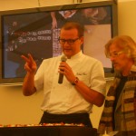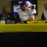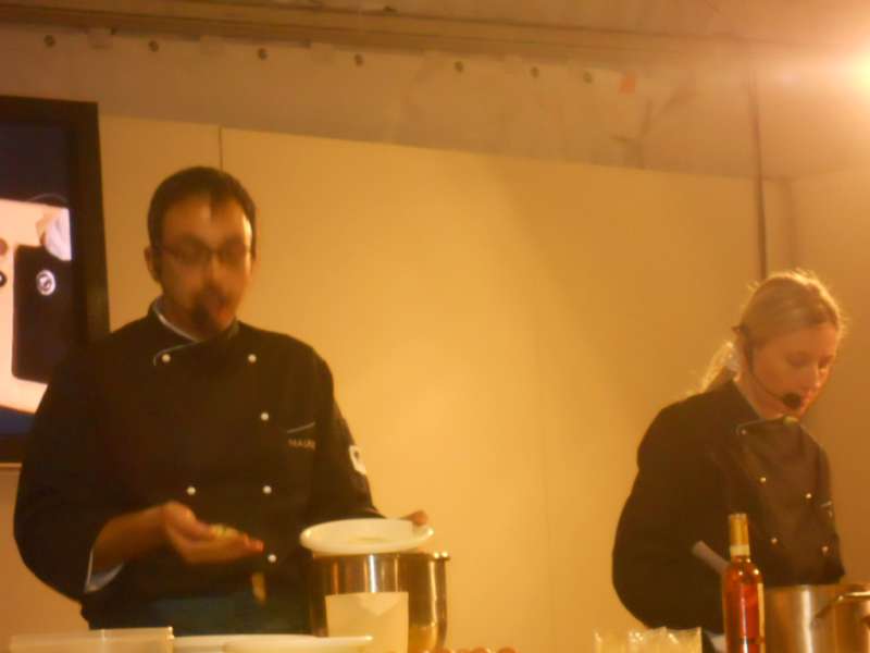 Anche gli “Chef per un giorno” entrano in azione: Velia propone una gustosa polentina fatta con farina di riso, arricchita da fois gras e recioto! Semplicemente divina! Maurizio propone la sua “Caprese al cioccolato per celiaci”, accompagnata da una gustosa crema inglese! Infine Sergio Maria, assistito dall’amico Alessio, che si sbizzarrisce in un farro mantecato al baccalà, accompagnato da polipetti! Dopo ciò ho raggiunto l’apoteosi!!!