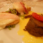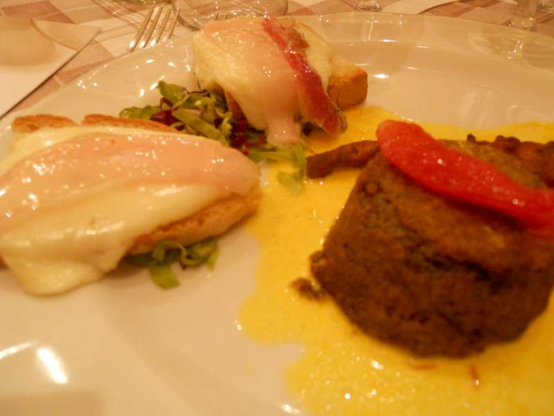 Lo Chef siciliano Antonio Ricotta , ha iniziato con uno sformatino di ricotta di pecora, funghi e pistacchi, su salsa di fiori di zafferano, mentre Mario ha risposto con un crostone con pecorino di Pienza e lardo di Cinta Senese.