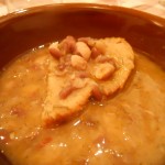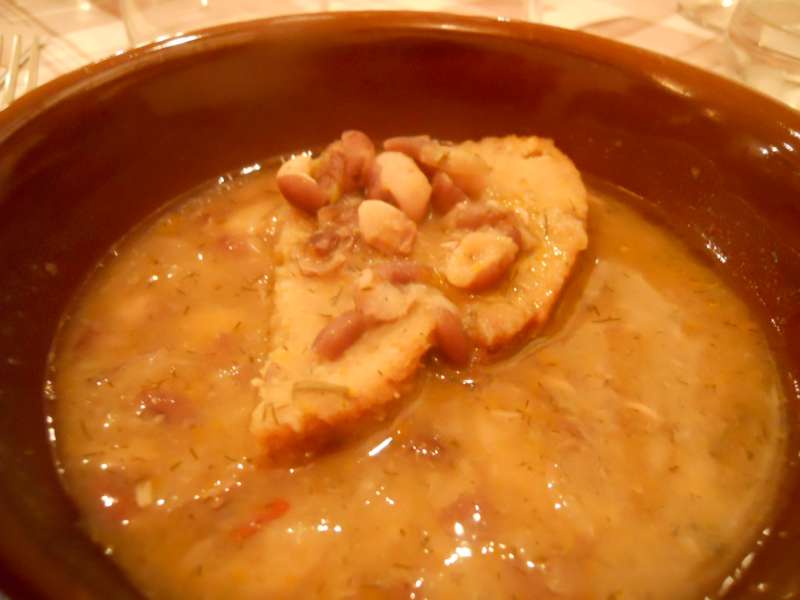 E la cinta è stata l’ingrediente base anche del ragù senese che accompagnava gli gnocchi. Dall’altra parte una zuppa di fagioli BADDA (presidio Slow Food) molto aromatica e delicata. Questi fagioli poi sono belli e curiosi da vedere: bicolori, con una suddivisione netta tra i due colori che vanno dall’avorio al viola scuro, oppure dall’avorio con macchie rosate e aranciate.