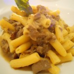 Si passa subito al sodo, saltando gli antipasti: la pasta è un trionfo di sapori, con i tortelli di melanzane con briciole, bufala e acciughe. I maccheroncetti al torchio con ragù di papero e salvia fritta, sono sempicemente intriganti, ottimi anche i pici all’astice fuori menu.