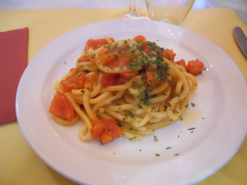 Continuando si può passare ai fantasmagorici pici con cavolo nero, briciole di pane e scaglie di pecorino, oppure ai pici all’arrabbiata.