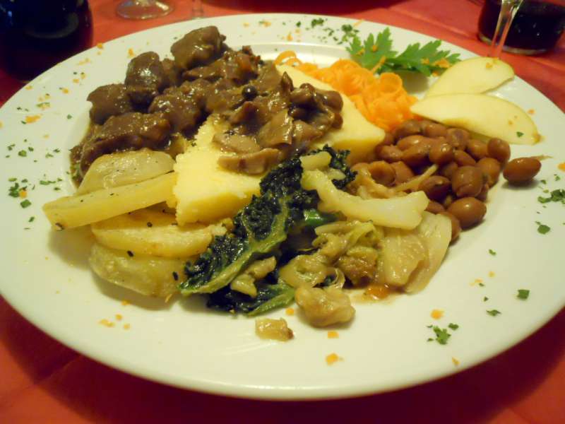 Piatto forte tra quelli di carne, è lo stinco al forno con polenta ai funghi e formaggio ma soddisfare l’appetito c’è anche il goulash di cervo. Dello stesso livello sono i dessert: il tradizionale strudel di mele e il semifreddo all’amaretto, vanno assolutamente provati.