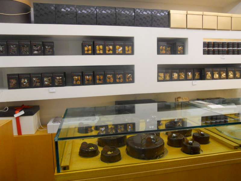 Nel banco appaiono piccole Sacher e torte foresta nera, nella vetrina all’ingresso è un trionfo di fondute da asporto e mousse. Dietro una porta a vetro si intravede il laboratorio: è quì che Andrea e il suo staff di giovani allievi, danno forma alla magia del cioccolato.