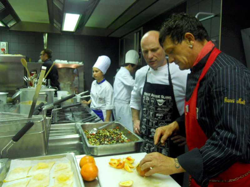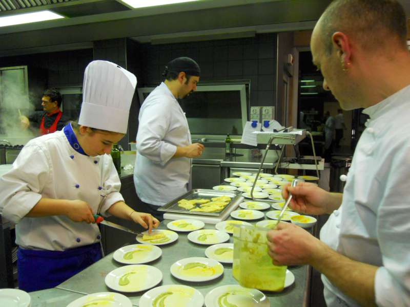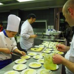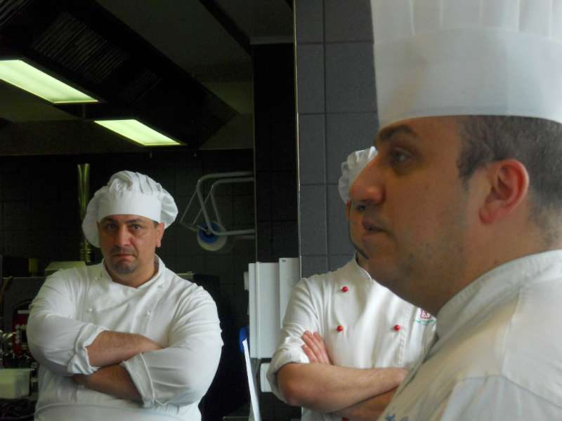 Ritrovarsi in una cucina di un albergo non è cosa di tutti i giorni, quando poi sei in mezzo a grandi chef è tutto ancora più emozionante. Park Hotel di Arezzo: design e contemporaneità, bianco quasi totale, sembra di essere a metà tra Star Treck e 2001 Odissea nello spazio. Tutto tace, un silenzio quasi surreale…poi i primi passi, le prime voci, ecco la grande brigata in arrivo.