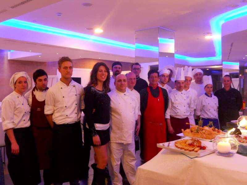 Una bella serata che ha avuto il suo apice con l’allestimento del “tavolo capolavori”: la passerella tutti i piatti presentati, che sono stati assaggiati in anteprima dalla bella Erica Petracconi, ospite speciale della serata. Serata che ha avuto un grande super visore, l’Executive Chef Andrea Alimenti, citato solo ora per un motivo: è la persona che insieme a Luca, ha coordinato la brigata, l’uscita dei piatti, che ha dato una mano a tutte le vare linee in attivo, e che mi ha insegnato anche tanti nuovi trucchi in cucina…..