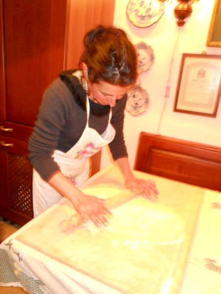 Su un spianaoia di legno versate la farina e il sale, e formate una fontana, quindi rompetevi dentro le uova, mescolate uova e farina con una forchetta fino a quando gli ingredienti si sono completamaente malgamati. Quando l’impasto diventa compatto lavoratelo con le mani per 10 minuti, formate una palla, e piegatela e ripiegatela più volte coni palmi delle mani. Lasciate riposare l’impasto per 15-20 minuti circa.Quindi infarinate l’asse di legno e con il mattarello formate una sfoglia sottile spingendo dal centro verso i bordi.