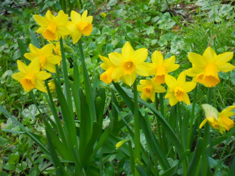 Antiche e nuove specie di questo fiore, allo stesso tempo umile e ricercato dai colori rosa corallo e salmone, si fondono in un caleidoscopio di figure colorate. Nelle varie aiuole si trovano i “Narcisi dei Poeti”, con fiori profumatissimi e semplici, bianchi, con una piccola corona gialla, orlata di rosso, ma anche gli “Incomparabili”, spuntano qua e la, con la sua corona aperta e increspata. L’erba cresce rigogliosa nei prati, e con i ricami dei fiori, sembra una coperta delle favole.
