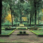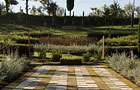 File di giovani cipressi, sono intervallate dalle azzurre siepi di “teucrium”, andando a formare figure geometriche ben definite, ma soprattutto seguendo una linea dolce e precisa nel terreno. Curioso scoprire opere come l’”Altare dello Scetticismo” l’”Oracolo di Te Stesso” che suggerisce un percorso riflessivo, la “Fontana del Buonsenso”, consiglia di non bere acqua oppure il “Centro dell’Universo”. Dentro una fitta siepe di bosso si congiungono travi di legno a formare u cubo cavo che rappresenta il padiglione del niente.