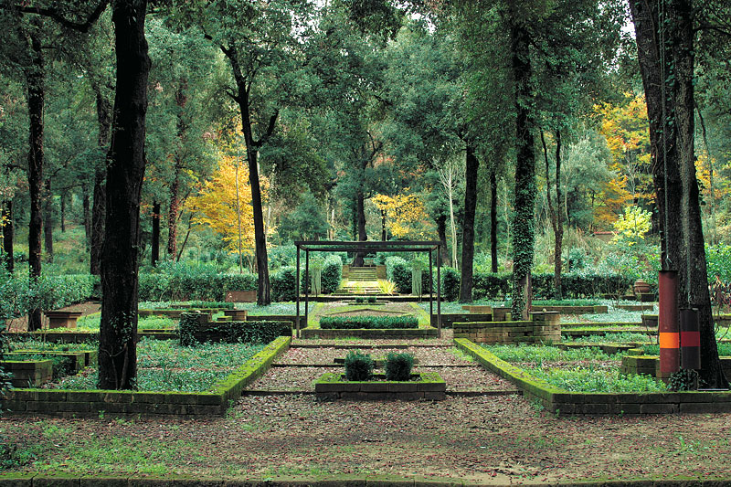 Tante domande, poche risposte, che portano sino all’”Altare dei Dubbi” posto sotto una gigantesca quercia, e sul quale è inciso il motto di Montaigne “Que sais je? Chi sono io? Vale la pena passeggiare tra i suoi camminamenti, protetti dalle fronde dei lecci e lasciarsi guidare tra fontane, gongs, colonne di acciaio e legno, citazioni antiche e moderne. Il parco è un giardino privato aperto a tutti e tra le regole da rispettare c’è quella del silenzio. La Ragnaia, è un omaggio ai “Saggi” che in tempi lontani governavano il bosco perché finivano i loro discorsi con una domanda sonora: Se Non Qui Dove?