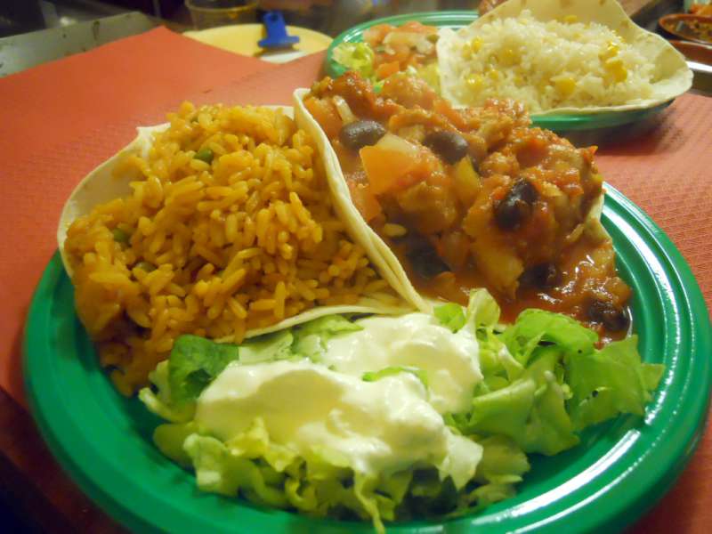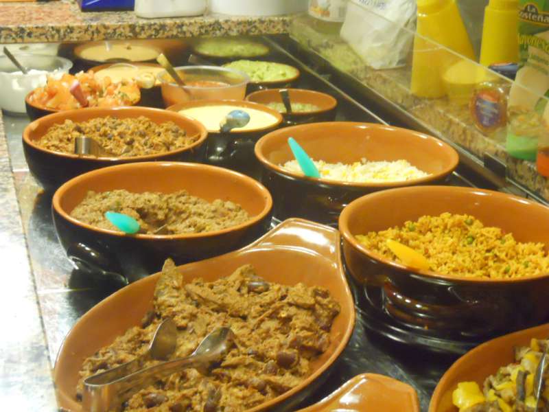 Tacos, burritos e fajitas per cominciare,e, abbondanti mix di assaggi, per continuare. I ripieni sono quasi tutti a base di pollo, manzo, maiale, verdure, riso o fagioli a voi scegliere l’abbinamento preferito. Poi ci sono le “papas“, le patate scavate ripiene di verdura, oppure chili, chorizo (la tipica fettina di salsiccia piccante) e formaggio fuso. E ancora Taquitos (tortilla di grano), i nachos, gli spicchi di mais fritti. Piccola scelta di birre mexicane, l’unico appunto è su una birra nazionale, che ci stona proprio in vetrina 😉