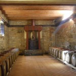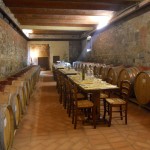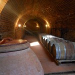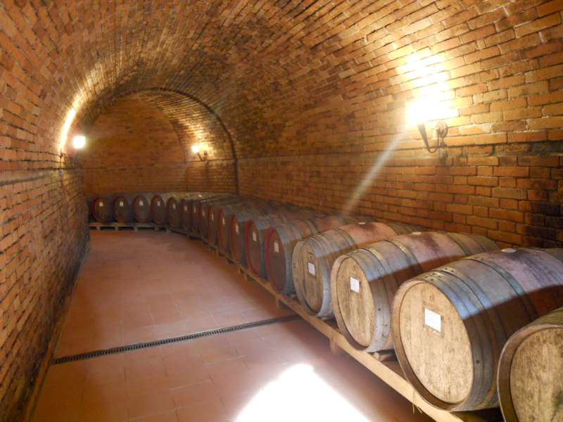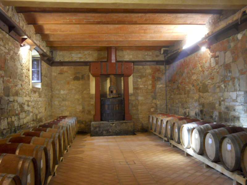 Sotto la villa si trova la parte più antica della cantina, con muri in pietra e soffitti in cotto: lungo le pareti sono allineate file di barrique e tonneaux di rovere che incorniciano l’antica pressa da vino, posta in modo maestoso a sorvegliare la sala. Quì vengono fatte anche piccole cene e degustazioni di vino.