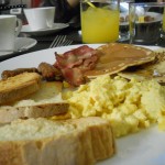 Il brunch, come da tradizone prevede, cereali e corn flakes, yogurt, pane tostato, bacon, uova strapazzate, susages (le salsiccine piccole e gustose delle famose colazioni anglosassoni!), pancakes, sciroppo d’acero, burro e marmellate ( quella di fichi è notevole!!), succo di arancia e caffè americano, quello vero! Il tutto a 10 euro!