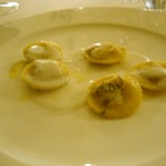 Se vi ho già conquistato, fate un passo indietro, perchè non siamo che a metà del cammino della cena, ancora profumi dal giardino per il petto di anatra accostato al miele di pino, alla genziana e alla pungenza dell’acciuga. La pasta è concessa al palato sottoforma di ravioli ripieni, golosi, di cipolla dolce, profumati da origano. E poi arriva il capolavoro: olio EVO, rosa, pompelmo e pomodoro, il giardino e l’orto che si uniscono, l’America con il Mediterraneo, il sapore con il profumo.