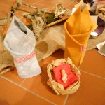 Un sacchetto di carta, una candela, Gesù Bambino e due pezzi di stoffa. Il primo pensiero è stato, ma che presepe ci faccio con questa roba? Dopo un attimo di smarrimento tutto si è messo in moto: il sacchetto di carta appallottolato è diventato la grotta oppure la culla per il bambinello, l’insalata il prato davanti alla capanna, la forchetta di plastica la stella cometa, le stoffe la Madonna o San Giuseppe, gli scarti delle carote le palme nel deserto, due sassi il bue e l’asinello…