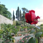 Il vento porta con se le note della banda intenta a suonare nel cortile dell’abitato: bello come impatto, farsi cullare dalle note mentre i passi procedono fino ad arrivare alla pietra del giardino murato. Varcata la soglia si resta inebriati dall’esplosione delle rose: profumo, colore, forma, un tripudio di bellezza, che quasi offusca le altre piante. A dominare il giardino, c’è il grande bacino che funge da vivaio d’acqua per i mesi estivi, quasi messo a dividere la villa dall’antica limonaia.