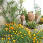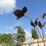 Mi hanno colpito in particolare le sculture in ferro di Paolo Fusi, farfalle che si levano nell’aria scompigliandosi tra i rami fioriti, oppure candelabri fermi e impettiti in attesa di produrre la luce della sera, in assenza di luna e di stelle. Gli altri giorni si possono fare visite guidate alla villa e alla cantina (ci sarà un post nel blog a parte), prenotandole.