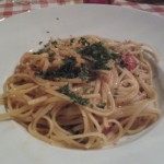 E a mezzogiorno? Oltre alla carta viene proposto un menu del giorno con un primo e un secondo con acqua e caffè inclusi, tutto a 10 euro. Qualche esempio? fusilli all’ortolana/ ravioli burro e salvia + polpette in umido con fagiolini, trofie al pesto/ gnocchi di patate al ragù + bistecchina di maiale e patate arrosto, oppure il venerdì spaghetto sulle vongole + frittura di mare. E Bacco? Bacco ancora cerca una sua identità, intanto solo una piccola selezione di etichette, ma anche il vino della casa quì ha un suo perchè, per il futuro attendiamo curiosi. Si spendono sui 25-30 euro per tre portate.