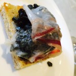 Le fette con il cavolo? Eccole, nella reinterpretazione del cavolo nero con il pane toscano e di nuovo lui, il Joselito dall’invecchiamento lento.